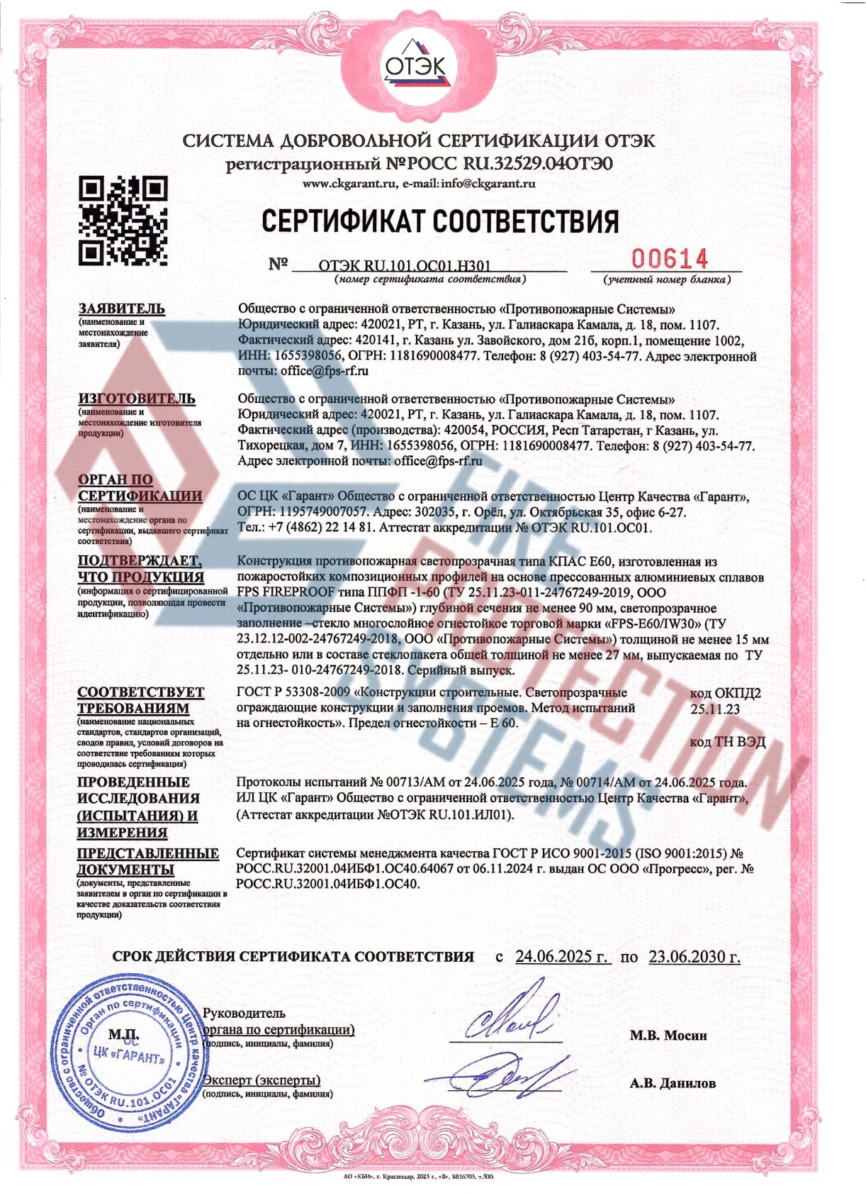 Максимальная огнестойкость – обеспечивает защиту от распространения огня и дыма в течение 60 минут, что соответствует высшему классу сопротивления огню.